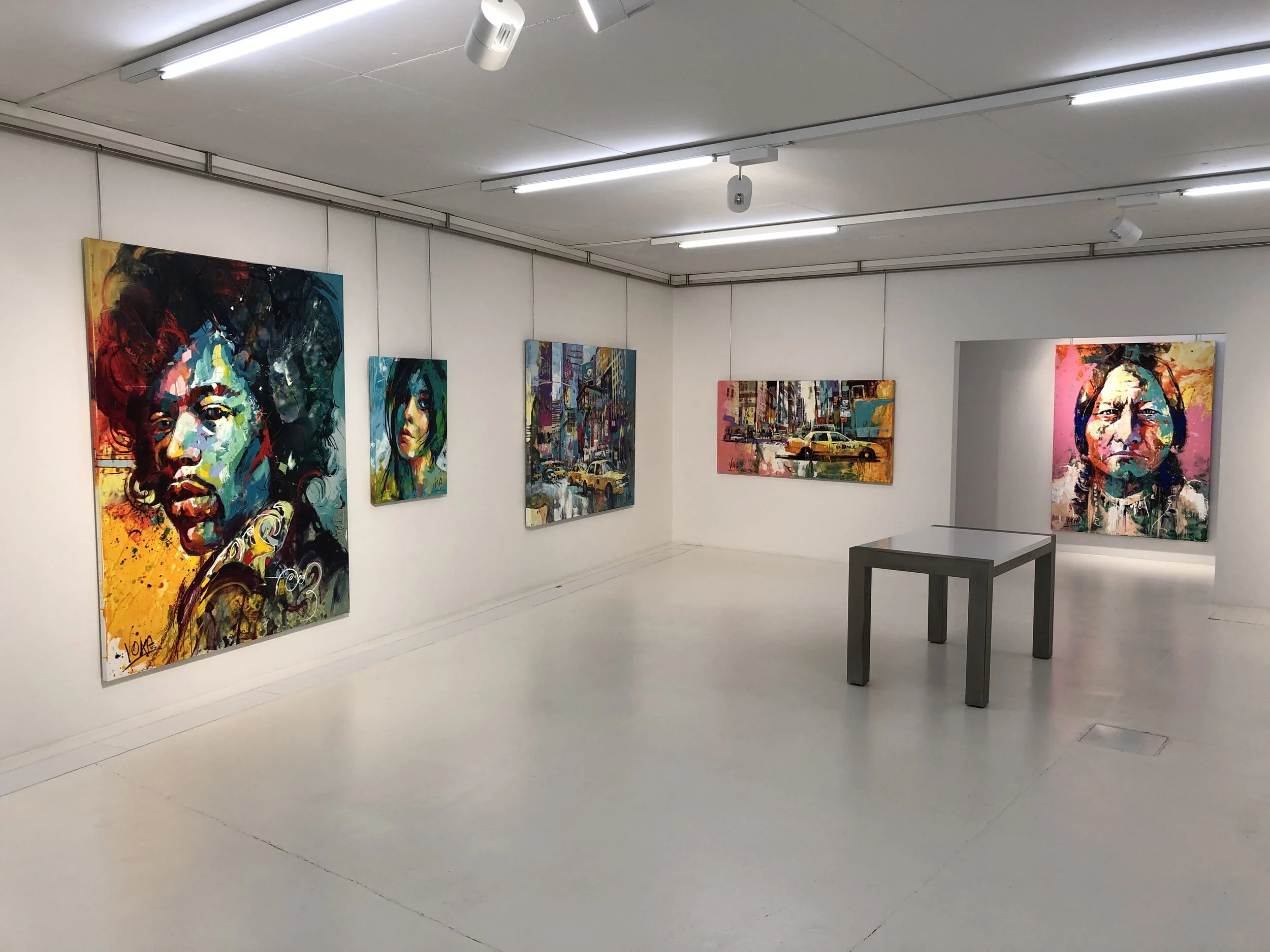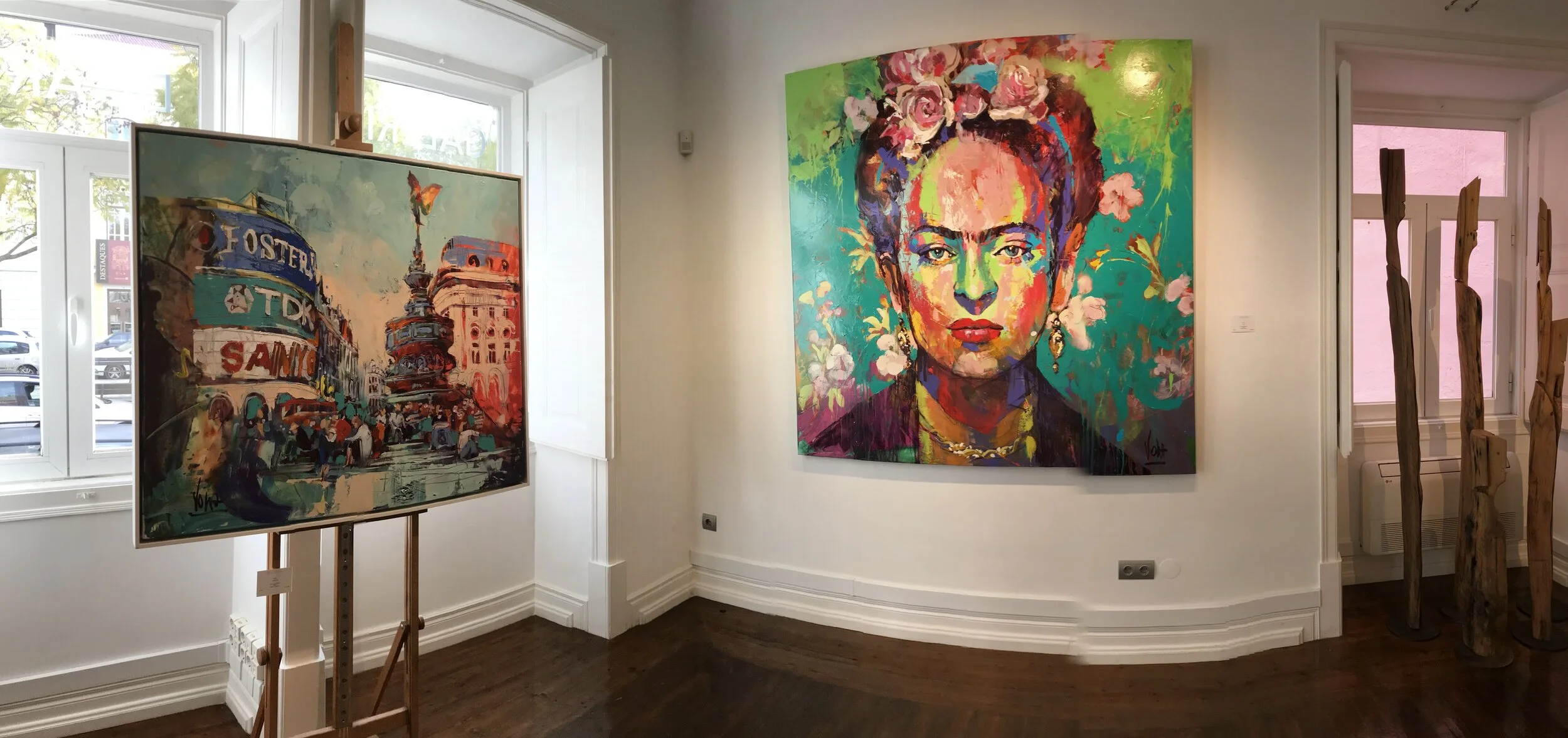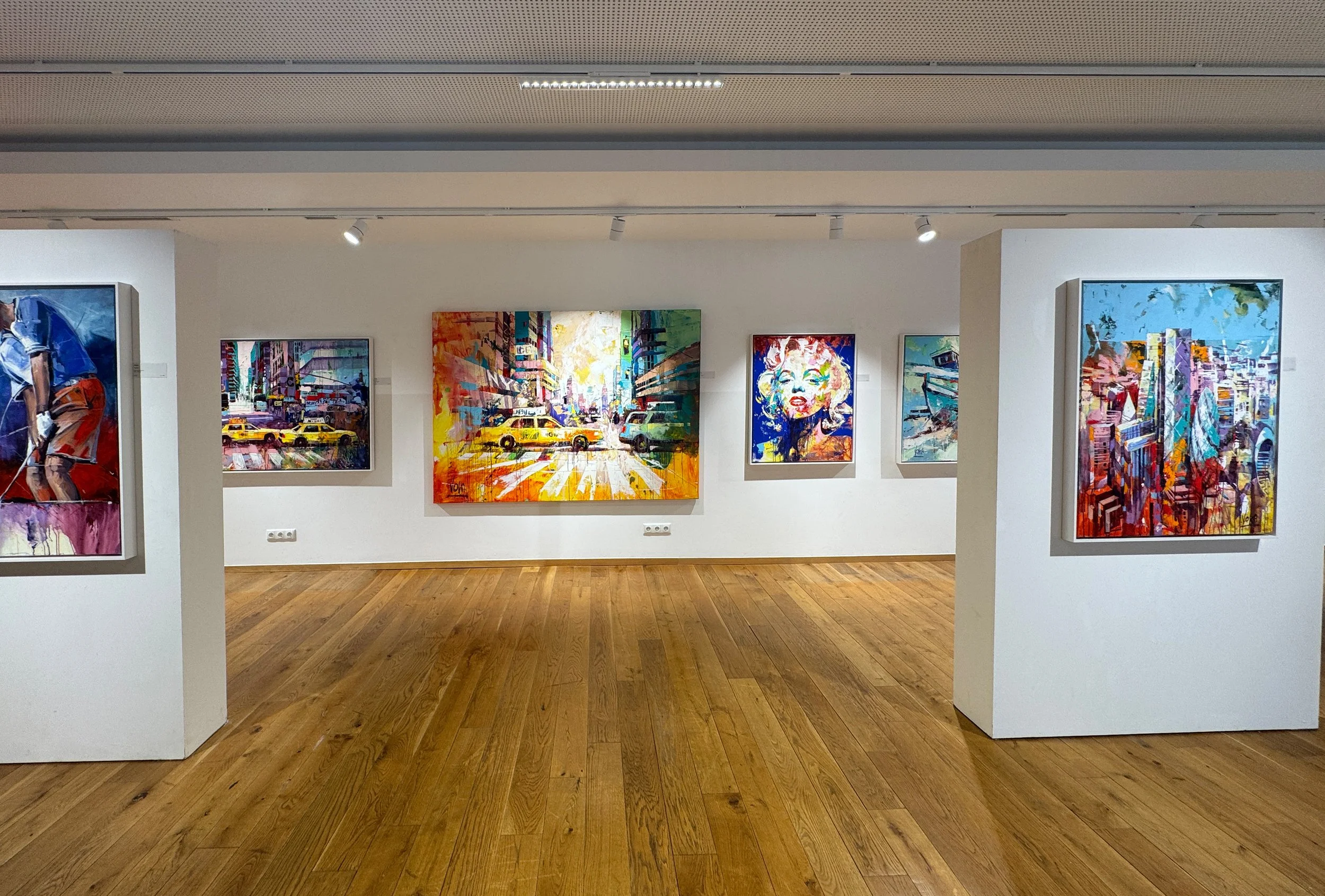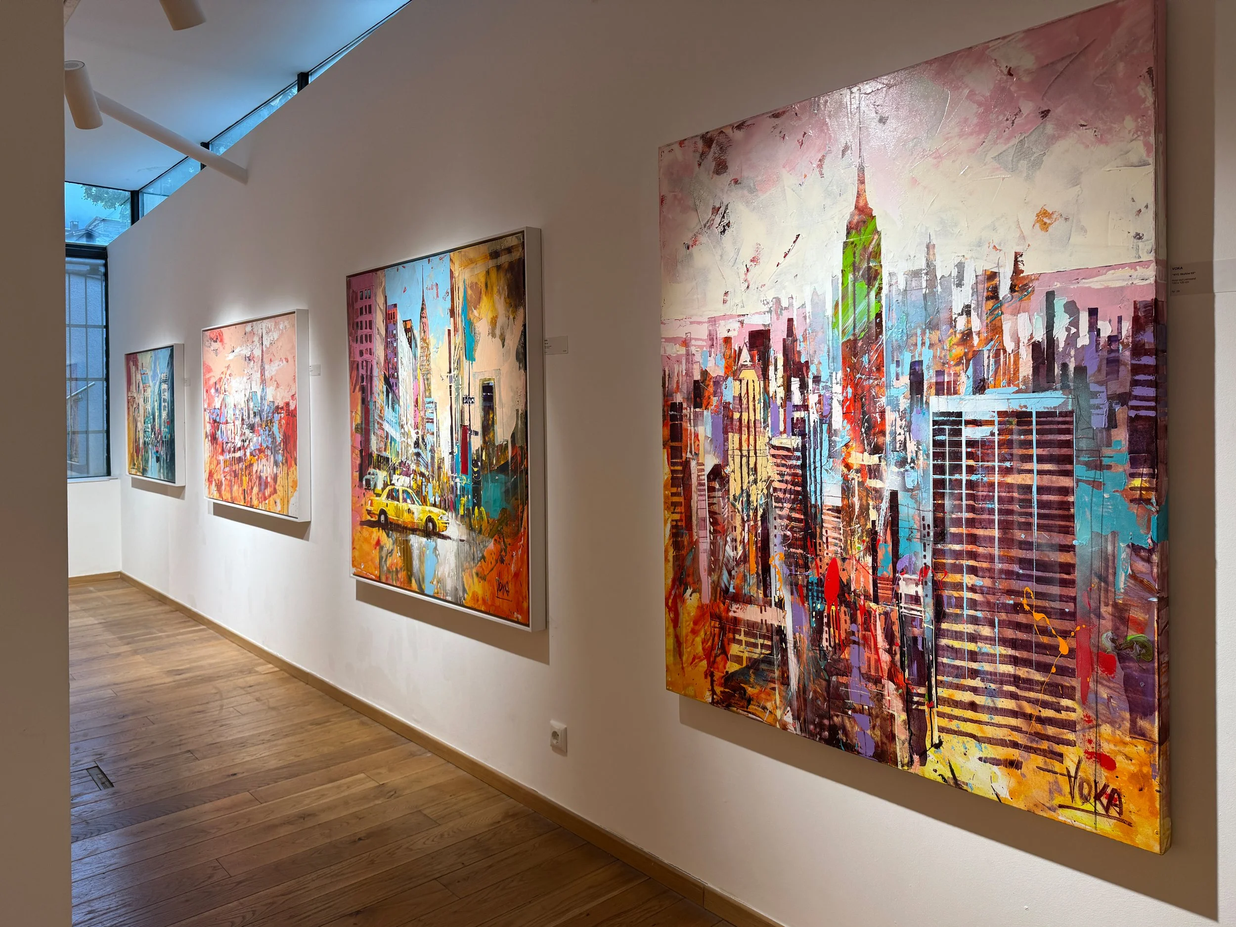 WORLD OF COLORS names VOKA the new exhibition at the gallery of Gerald Hartinger Fine Arts in Vienna's first district, which specializes in pop art. Over the last few months, the artist has devoted himself intensely to his painting and has created vibrant and powerful works, that cast a spell over the viewer. His subjects range from big city scenes from New York or London, character portraits of Hollywood legends like Marilyn Monroe or Charlie Chaplin, to icons from the art world like Andy Warhol, Jean Michel Basquiat and Frida Kahlo.