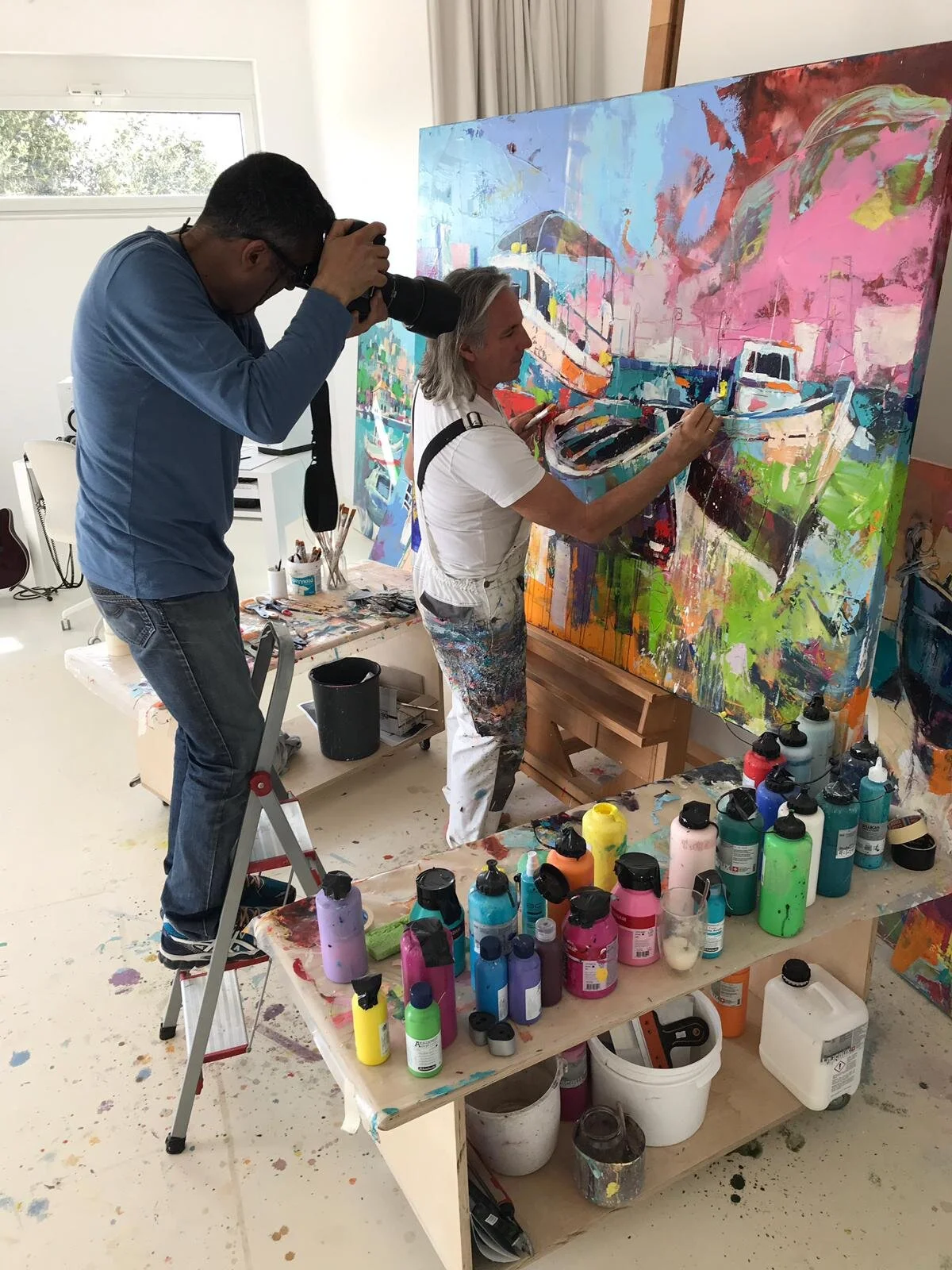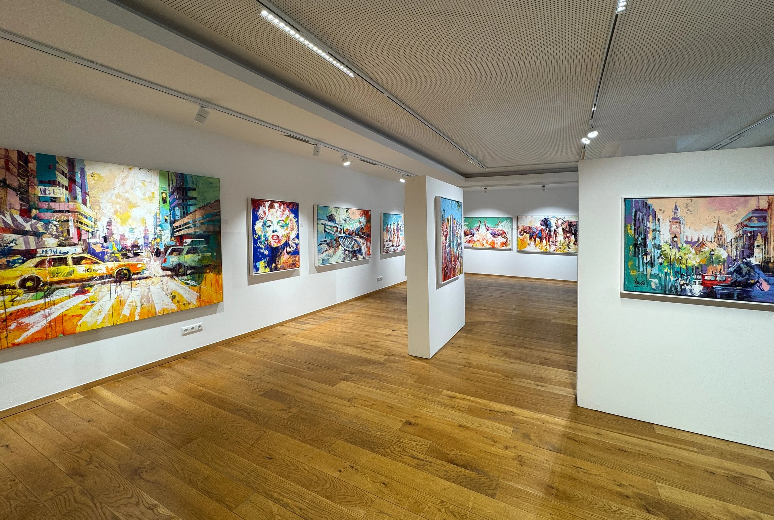 Neue Werke in der Galerie Kunst 7 in der Schweiz. Seit mehr als zwei Jahren vertritt Sonja Frei in ihrer Galerie KUNST 7 VOKA in der Schweiz. Innerhalb dieser kurzen Zeit entwickelte sich eine beachtliche Sammlergemeinde, die es kaum erwarten konnte, wieder neue Werke des Spontanrealisten präsentiert zu bekommen. In gemütlich entspannter Atmosphäre hatten die Besucher die Möglichkeit, den Schöpfer dieser farbenstarken Gemälde persönlich kennen zu lernen und mehr über sein Werk und die Person dahinter zu erfahren.