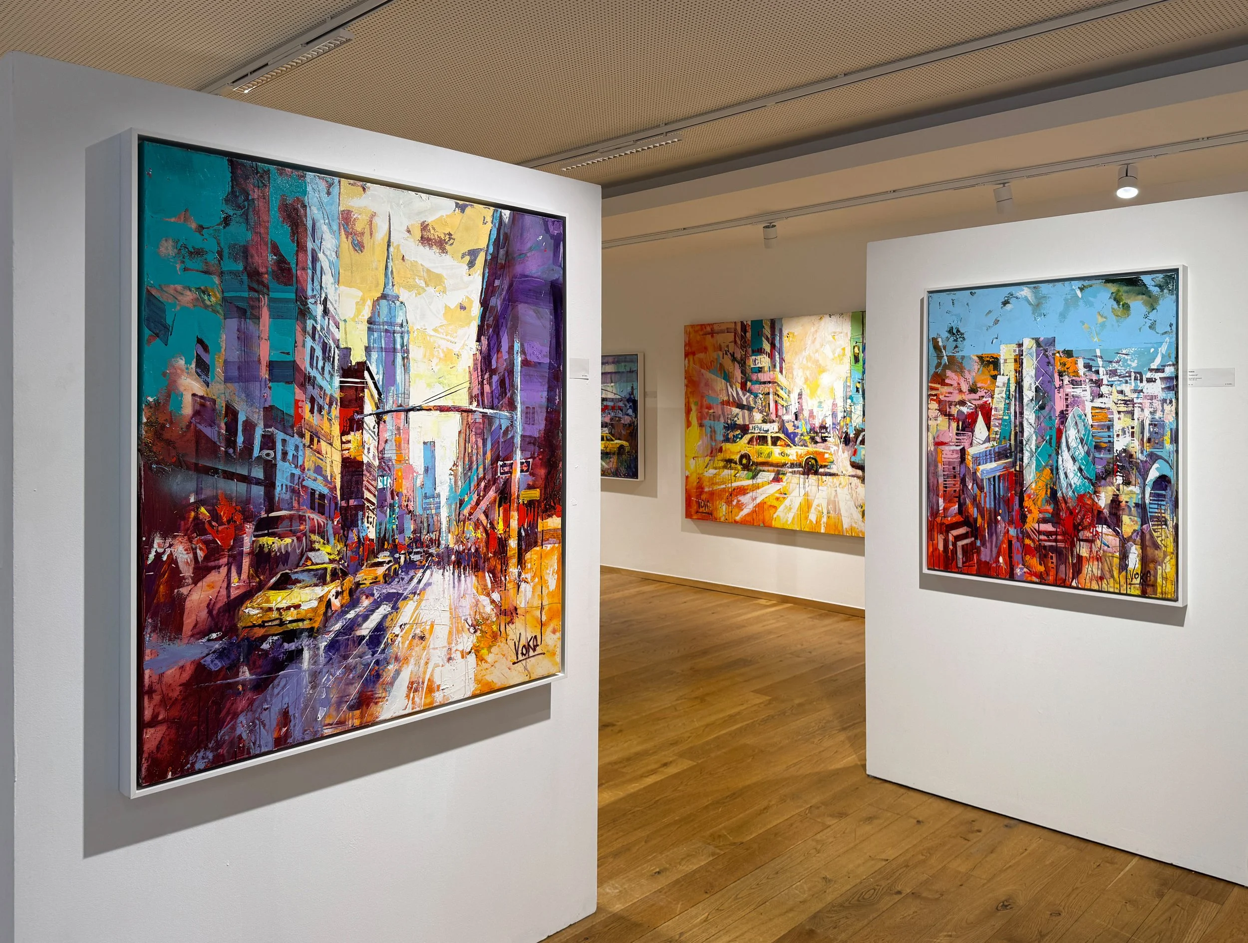FARBWELTEN nennt VOKA die neue Ausstellung in der auf Pop Art spezialisierten Galerie Gerald Hartinger Fine Arts in Wiens 1. Bezirk. Über die letzten Monate hat der Künstler sich intensiv seiner Malerei hingegeben und hat farbenstarke und kraftvolle Werke geschaffen, die die Betrachter in ihren Bann ziehen. Seine Sujets reichen von Großstadtszenen aus New York oder London, über Charakterportraits von Hollywoodlegenden wie Marilyn Monroe oder Charlie Chaplin bis hin zu Ikonen aus der Kunstwelt wie Andy Warhol, Jean Michel Basquiat und Frida Kahlo.