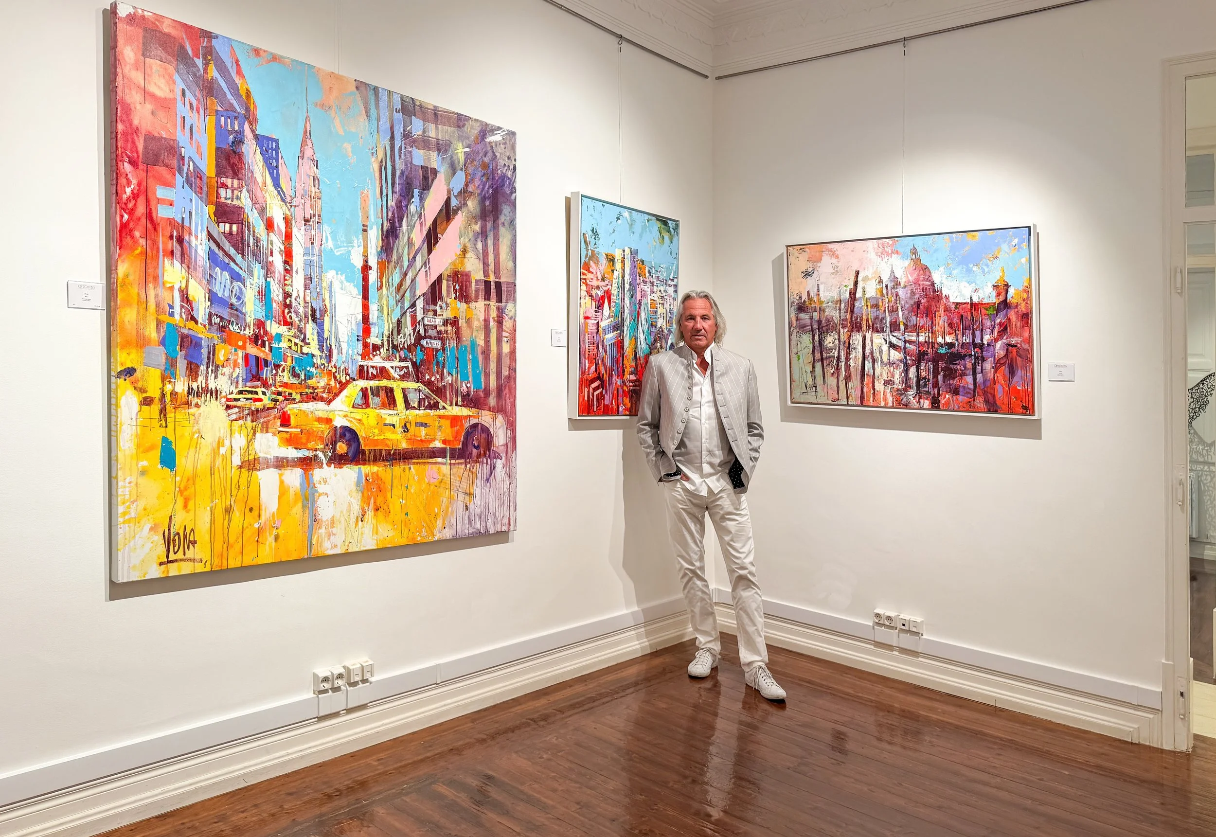 It was a brilliant kickoff for Vokas extravagant art, at his first exhibition in the Art Metropole Paris. When he coined the term ' spontaneous realism ' for his dynamic and strong couloured paintings a few years ago , he could not imagine the international attention he would had. In addition to the successful exhibitions in Hamburg and Miami, now the next stop ist the art capital Paris. The gallery Ariel Sibony , is one of the most prestigious addresses at Place des Vosges, the well-known hot spot of the French art scene.